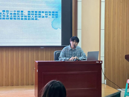 分享环节中,于勇同学结合自身经历,讲述了志愿服务中的感人故事与深刻感悟。他详细介绍了支教活动的策划与执行过程,强调根据孩子们需求给予精准帮助的重要性。现场观众聚精会神,被于勇学长的分享深深吸引。他们因故事中的温情而面露微笑,为支教中的困难而微微皱眉,被学长的奉献精神所感染,对志愿公益活动也有了更深刻的理解与向往。